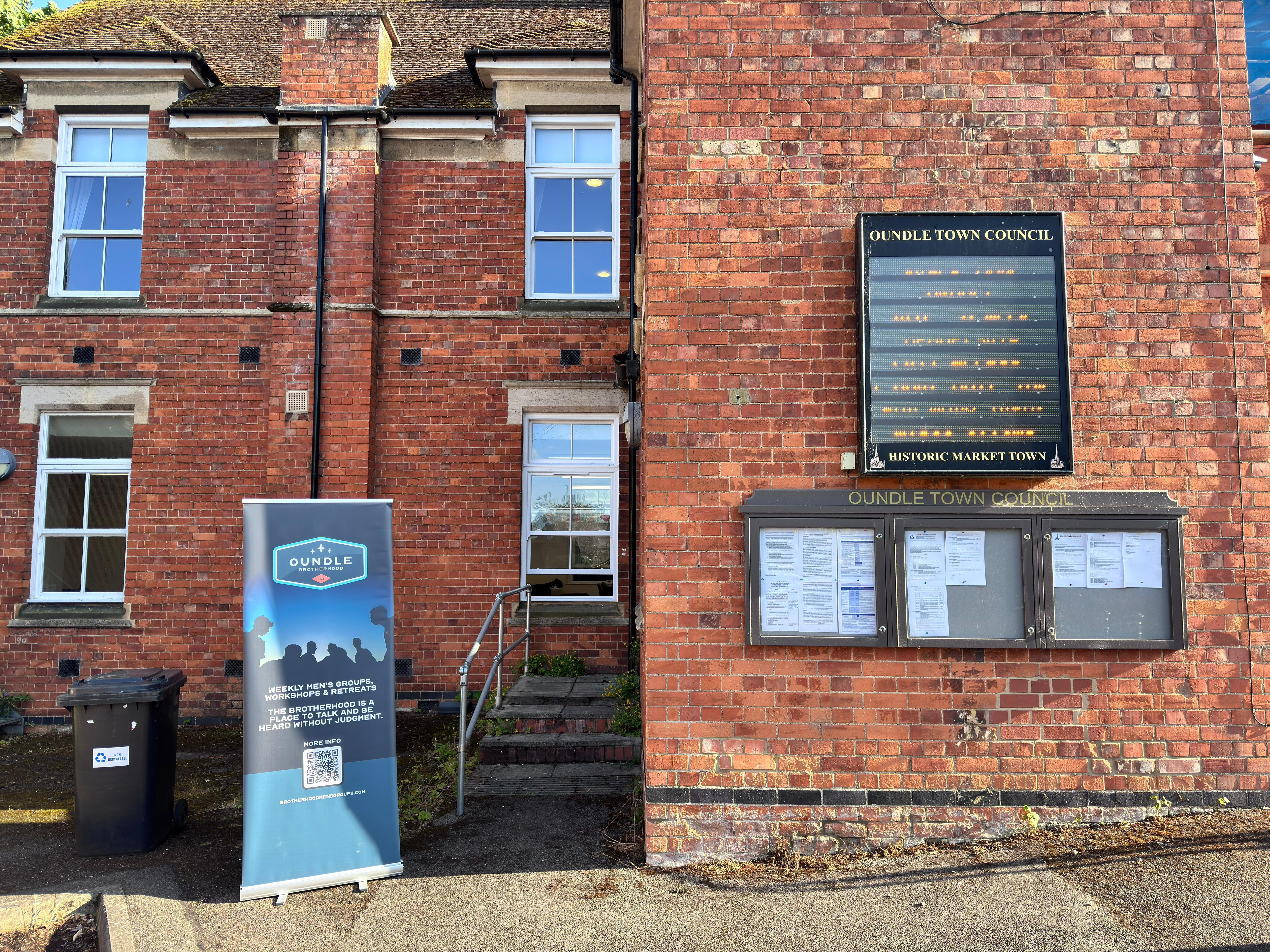 Oundle Brotherhood meet at Fletton House. As you face the building from the car park, you'll see the entrance to our room on the left. Sometimes, if the side door isn't open, go through the main entrance and turn left.
